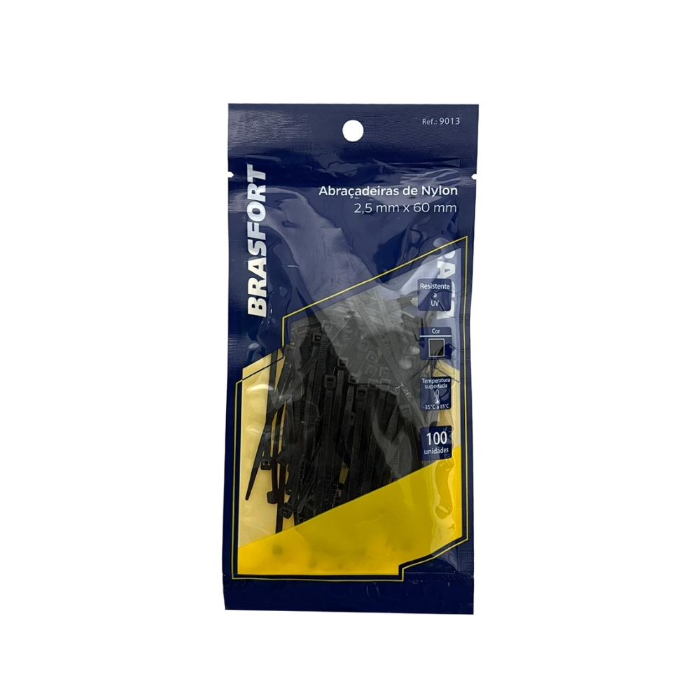 A Abraçadeira de Nylon Preta 2,5x60mm Brasfort – Ref. 9013 é a escolha perfeita para quem busca organização, segurança e praticidade em projetos elétricos, montagem de painéis, instalações hidráulicas, jardinagem ou até mesmo uso doméstico. Fabricada com nylon de alta resistência (PA66), essa abraçadeira é sinônimo de durabilidade e eficiência.
