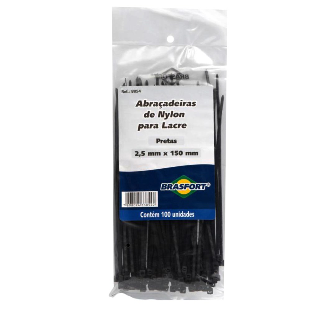 Abraçadeira de Nylon Preta Brasfort 2,5x150mm 100 Peças | 8854