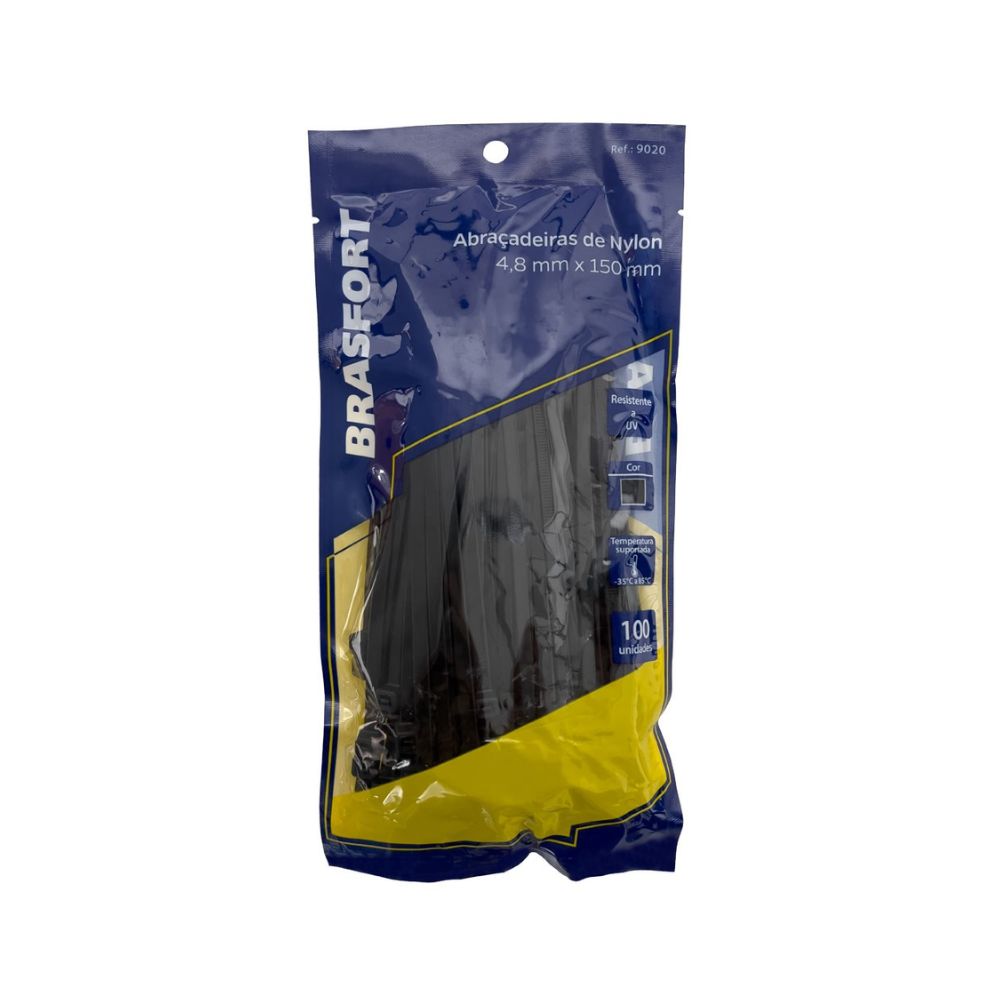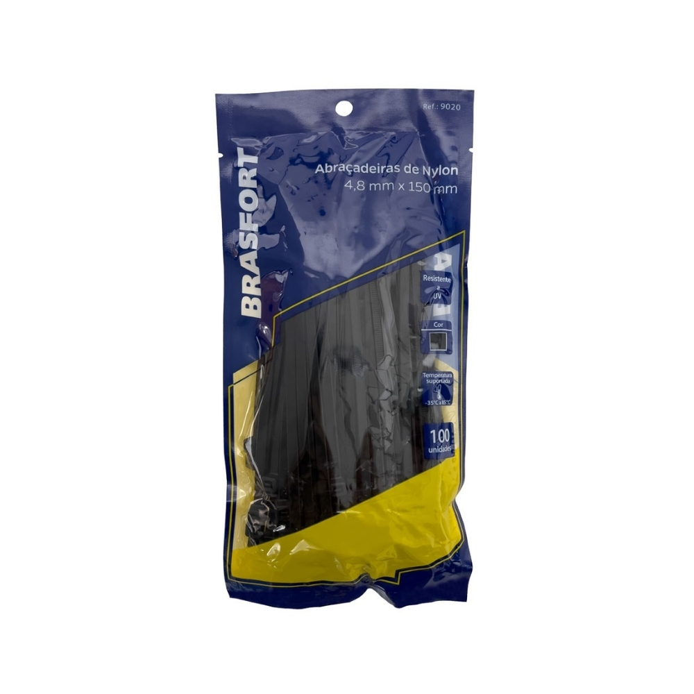 Abraçadeira de Nylon Brasfort Preta 4,8 x 150 mm com 100 Unidades | 9020
