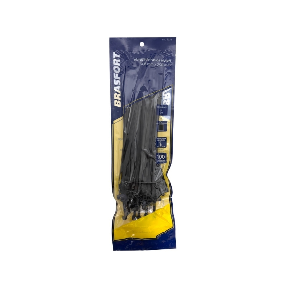 Abraçadeira de Nylon Brasfort Preta 4,8 x 250 mm com 100 Unidades | 9021
