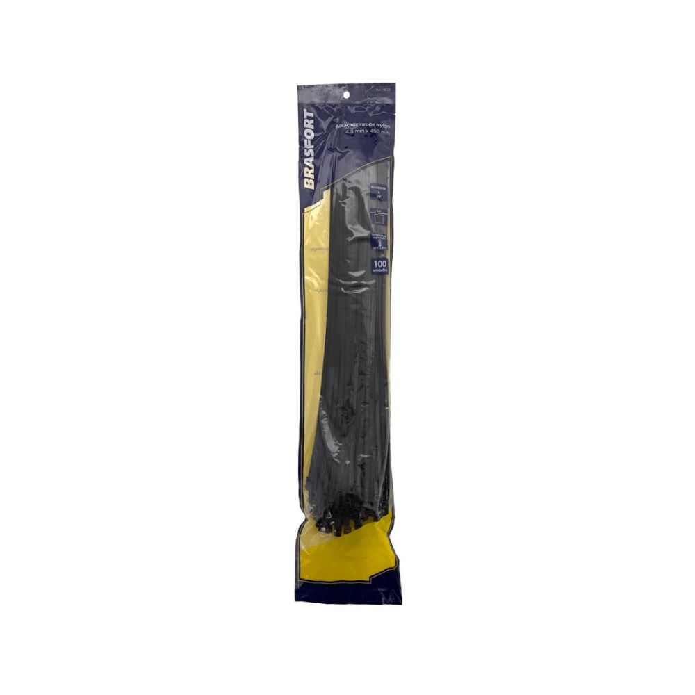 Abraçadeira de Nylon Brasfort Preta 4,8 x 450 mm com 100 Unidades | 9023