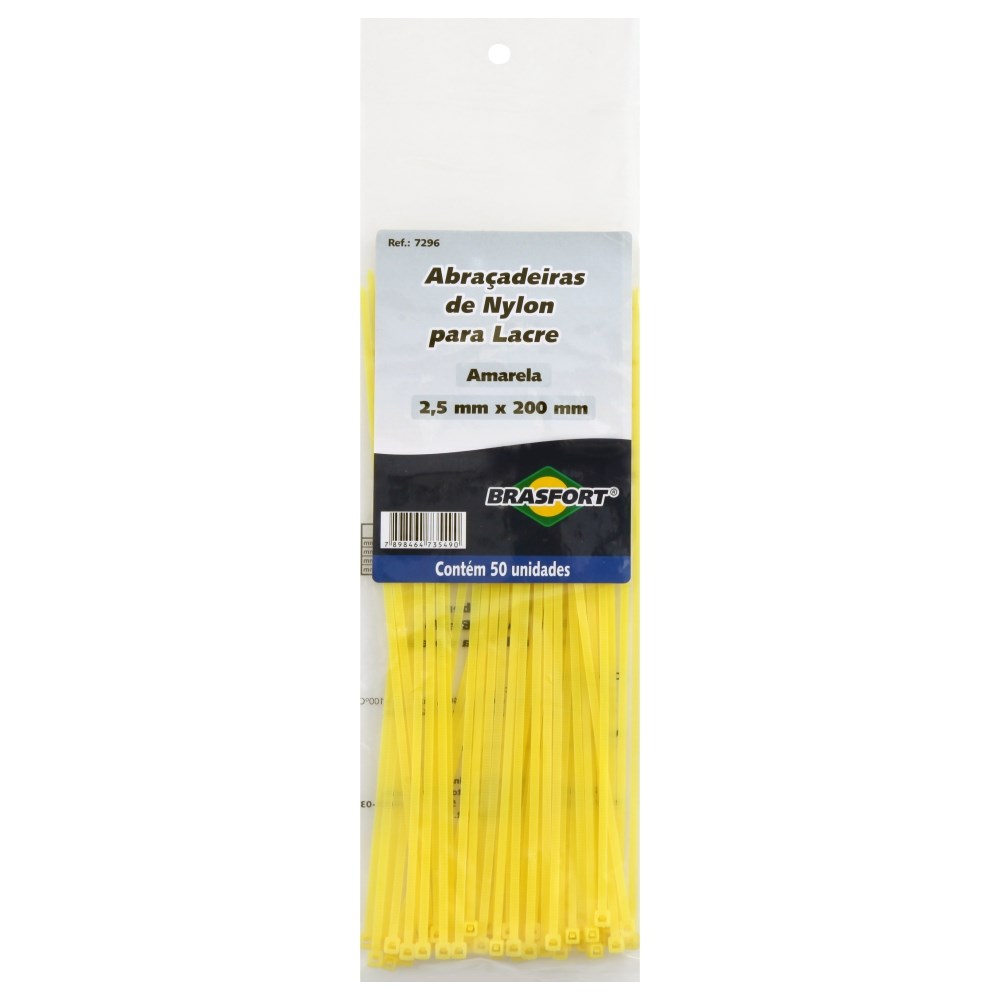 Abraçadeira Nylon Brasfort Amarela 2.5x200 50 Peças 7296