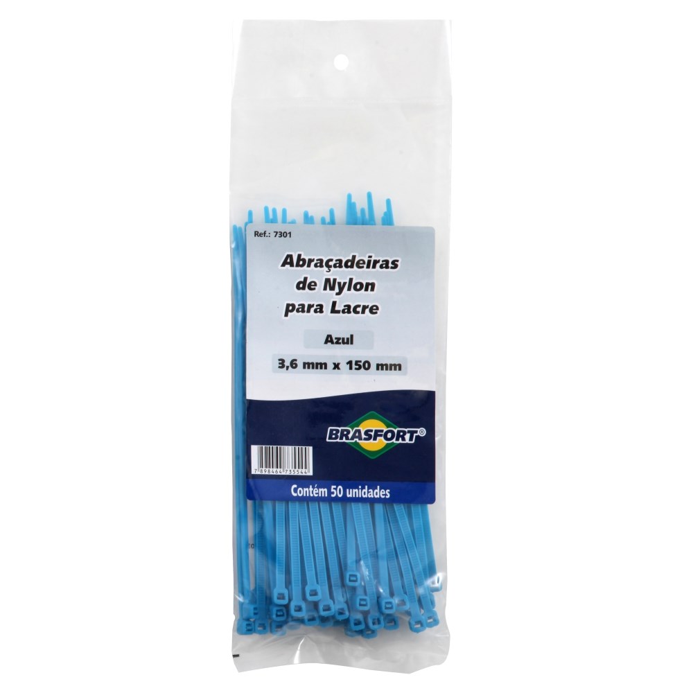 Abraçadeira Nylon Brasfort - Azul 3,6x150, 50 Peças - 7301