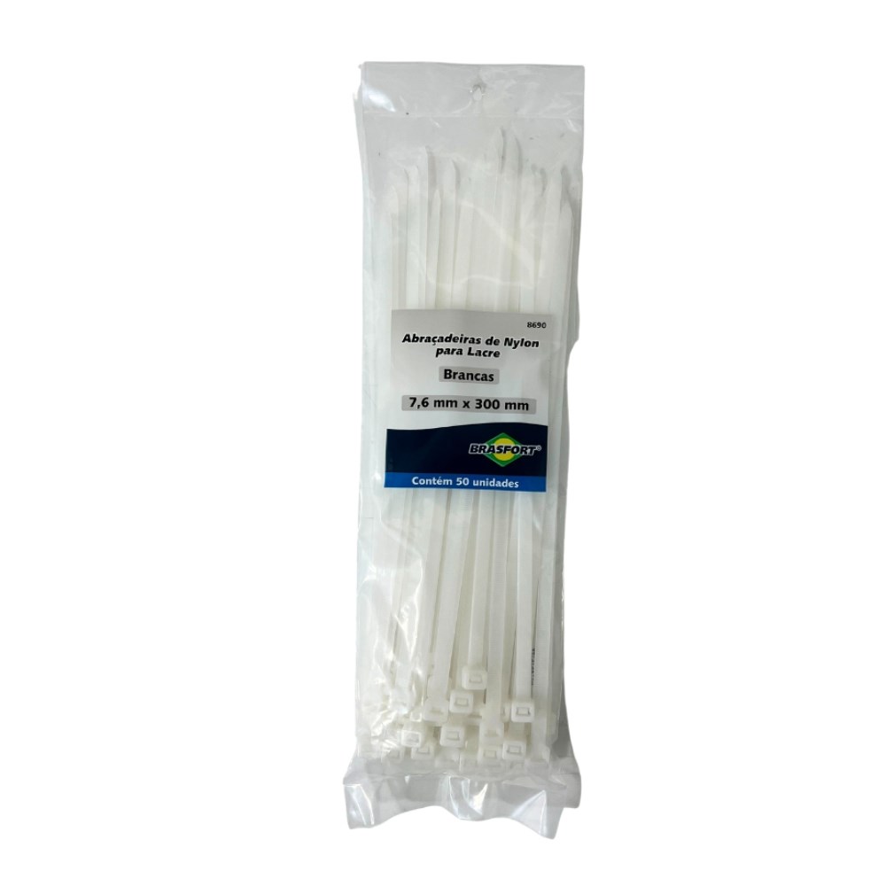 Abraçadeira Nylon Brasfort - Branca 7,6x300 50 Peças - 8690