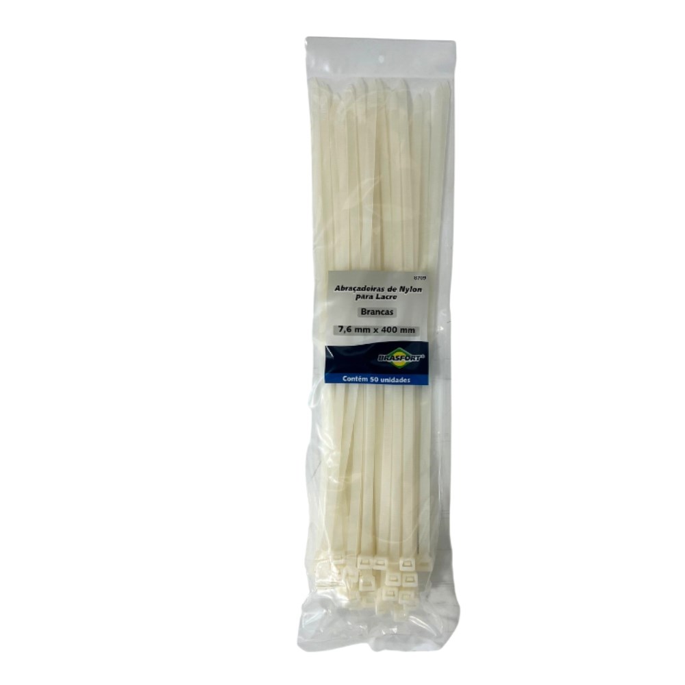 Abraçadeira Nylon Brasfort - Branca 7,6x400 50 Peças - 8709
