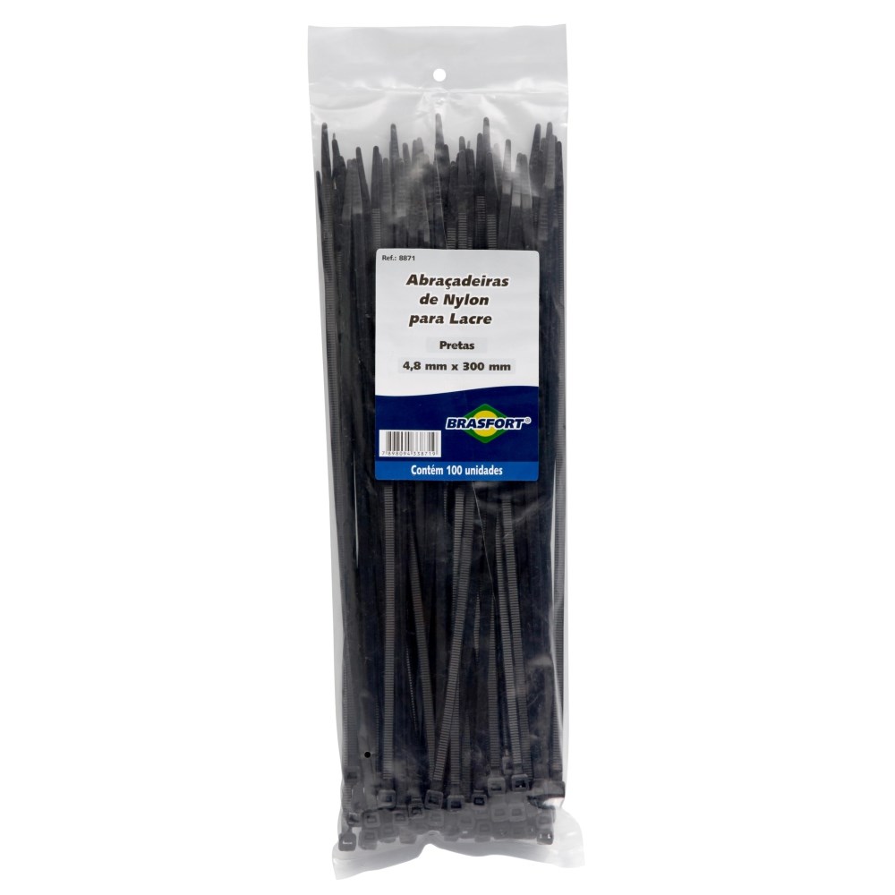 Abraçadeira Nylon Brasfort Preta 4.8x300 100 Peças 8871