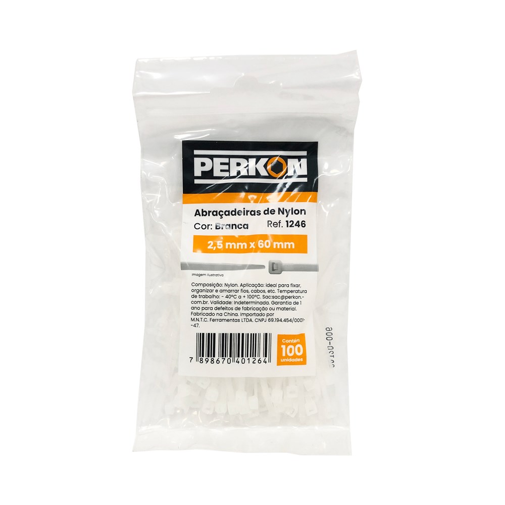 Abraçadeira Nylon Perkon - Branca 2,5x60 100 Peças - 1246