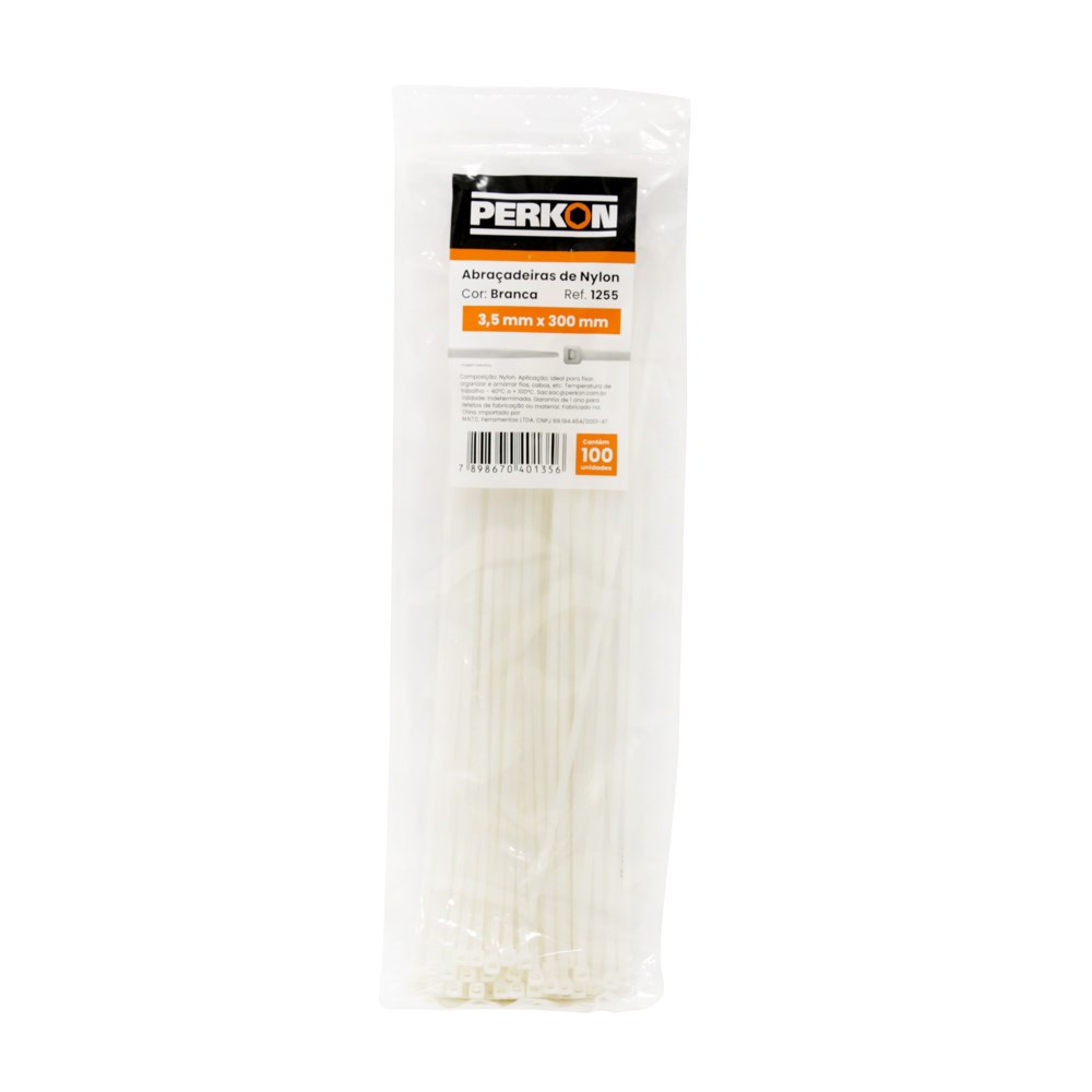 Abraçadeira Nylon Perkon - Branca 3,5x300 100 Peças - 1255