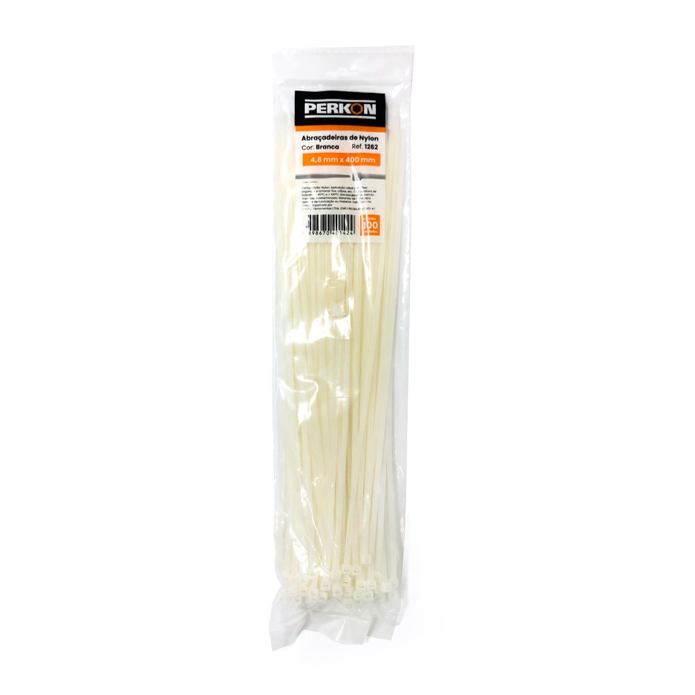 Abraçadeira Nylon Perkon Branca 4.8X400 100 Peças 1262