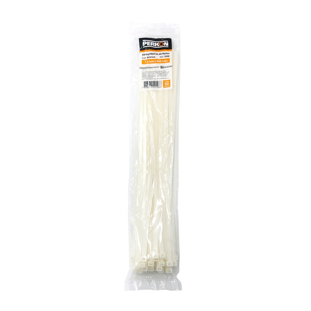 Abraçadeira Nylon Perkon Branca 7.6X500 50 Peças 1268