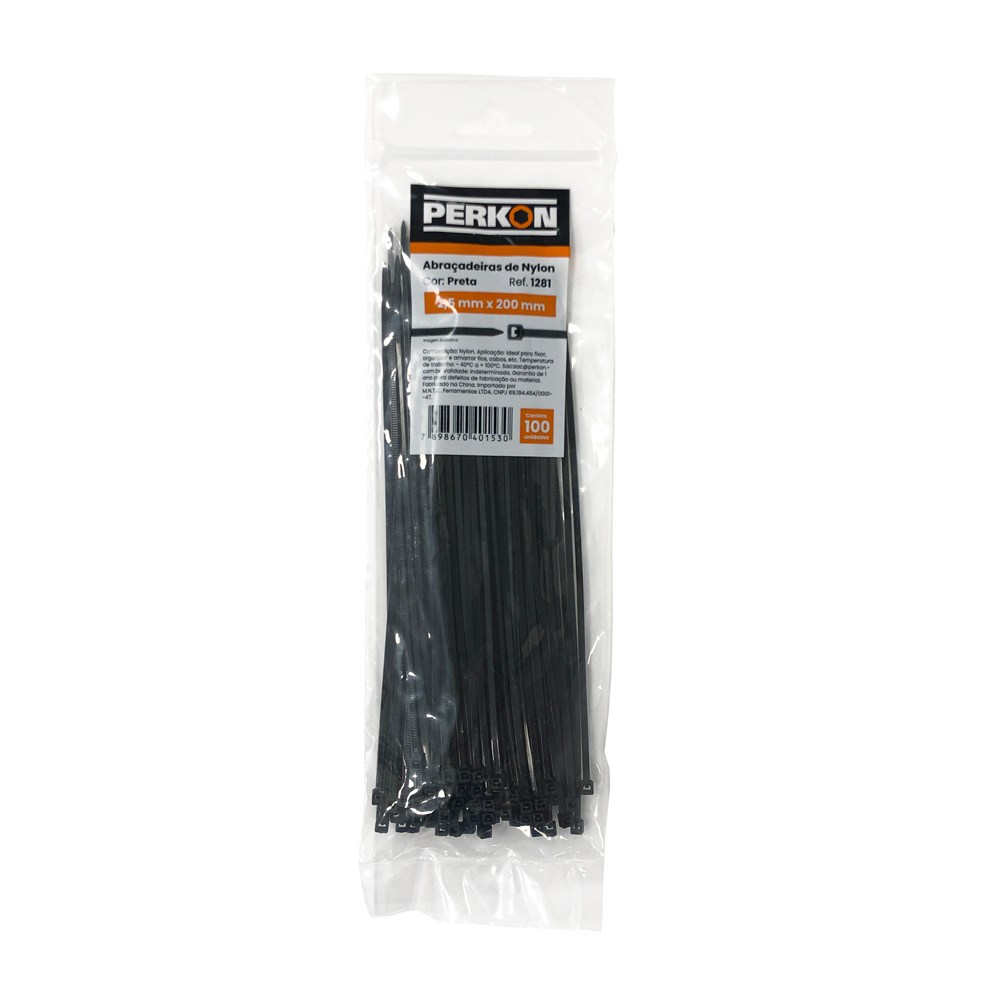 Abraçadeira Nylon Perkon - Preta 2,5x200 100 Peças - 1281