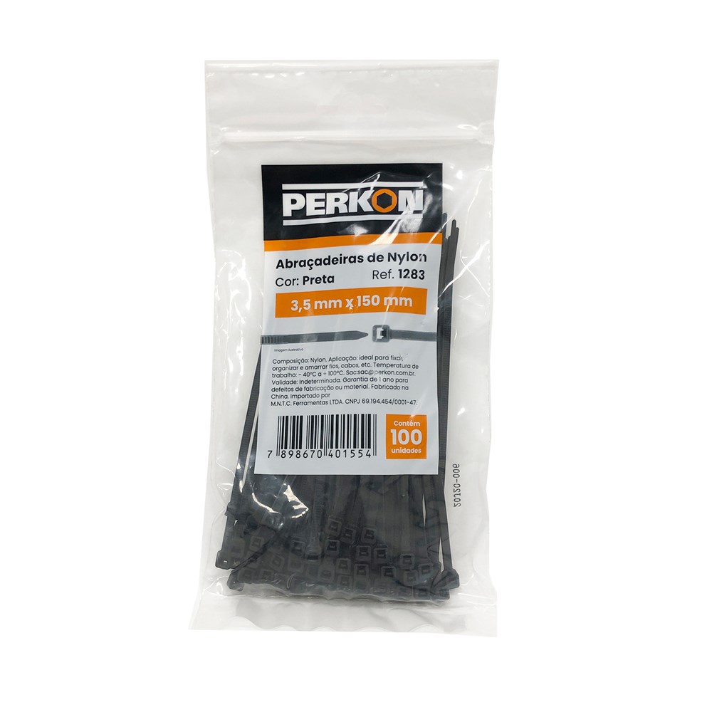 Abraçadeira Nylon Perkon - Preta 3,5x150 100 Peças - 1283