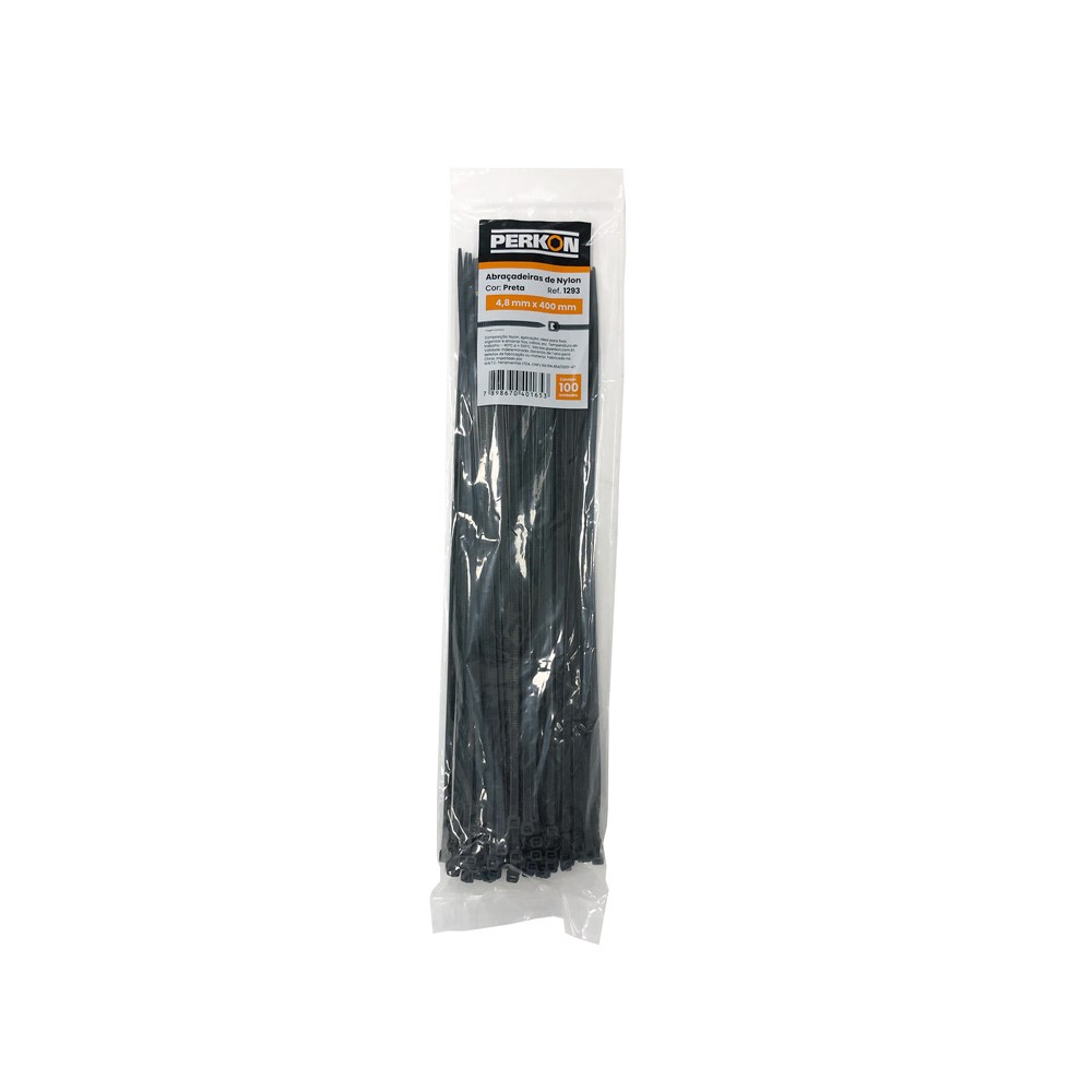 Abraçadeira Nylon Perkon - Preta 4,8x400 100 Peças - 1293