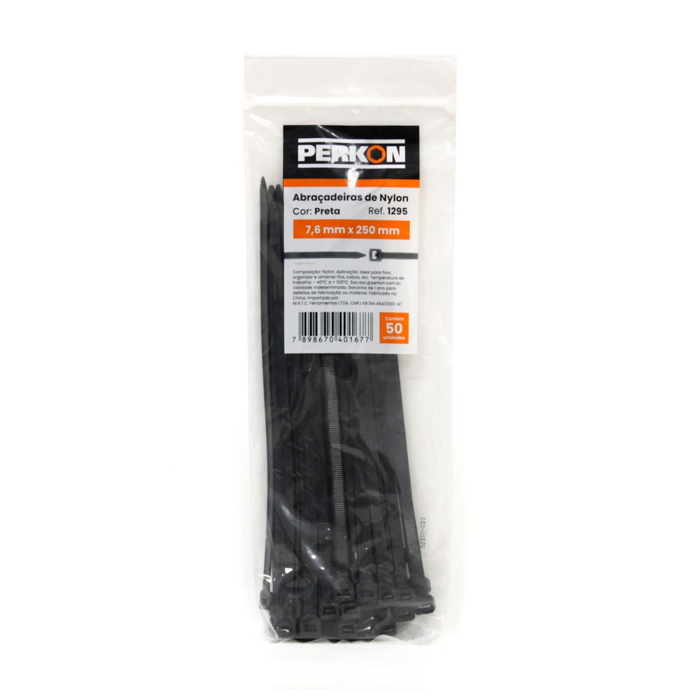 Abraçadeira Nylon Perkon Preta 7.6X250 50 Peças 1295