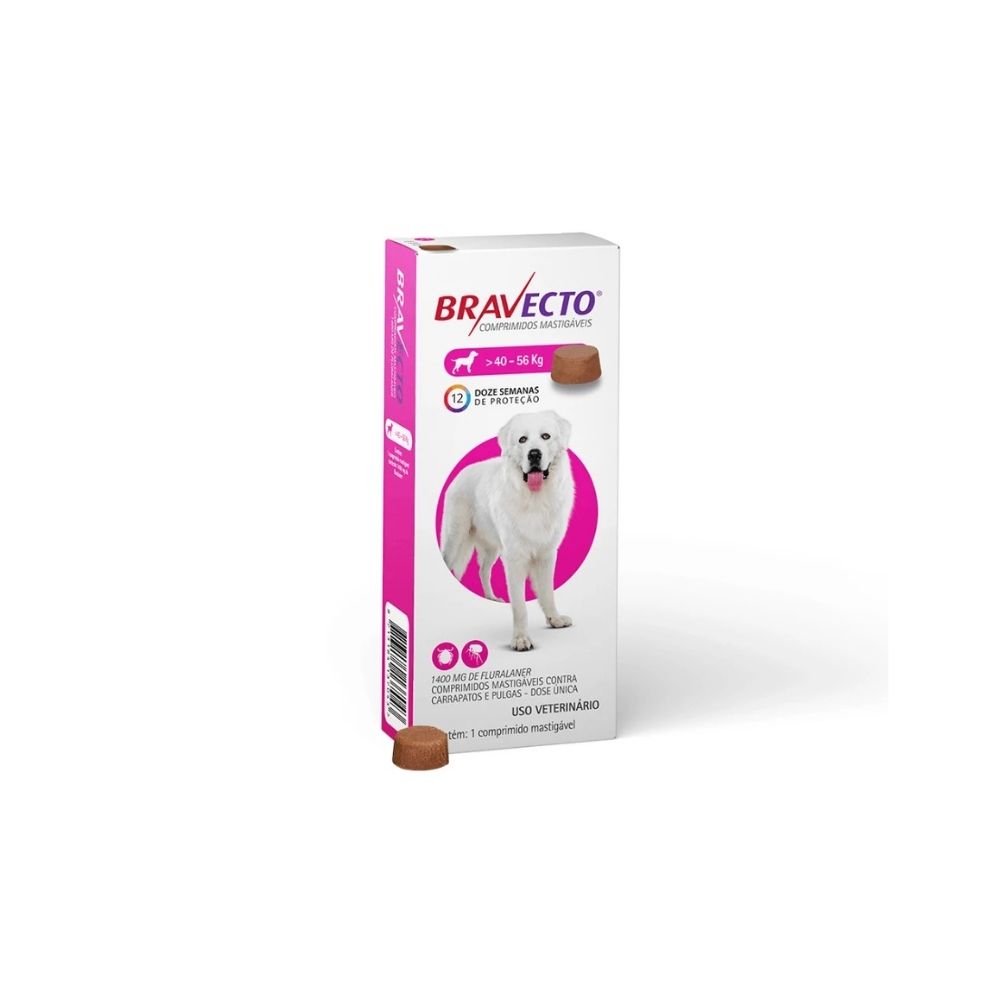 Antipulgas E Carrapatos 1400mg para Cães de 40 A 56kg Bravecto 1 Comprimido