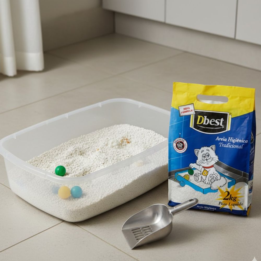 Garanta já a Areia Dbest Tradicional 2kg e mantenha a caixa de areia do seu gato sempre limpa, prática e eficiente!