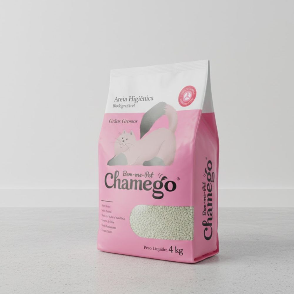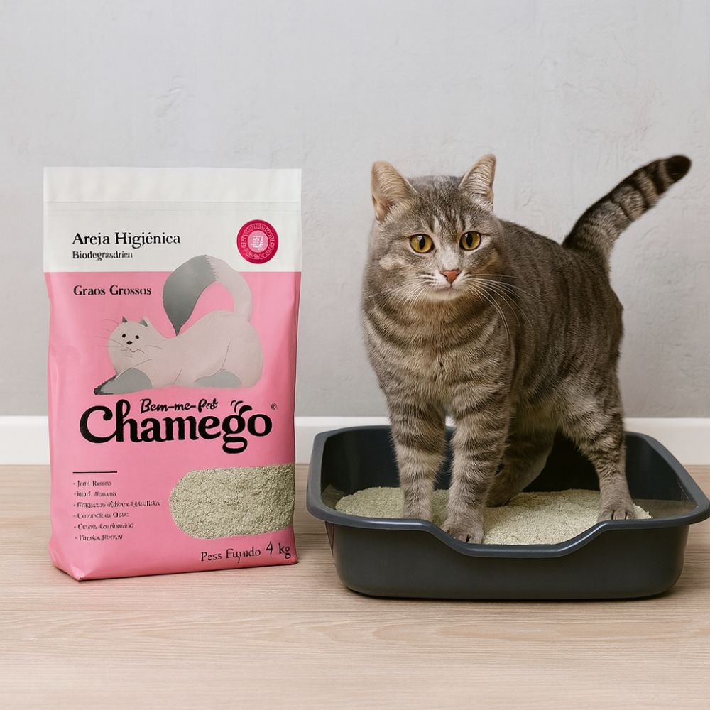 Garanta já a Areia Chamego Grãos Grossos 4kg e mantenha a caixa de areia do seu gato sempre limpa, prática e confortável!