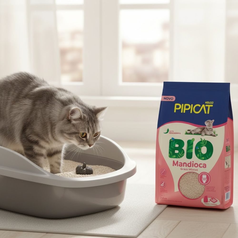 Garanta já a Pipicat Bio Mandioca 2,6kg e ofereça ao seu gato uma solução de higiene sustentável, prática e eficiente!