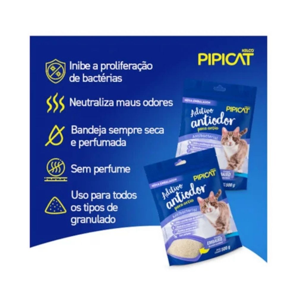 Garanta já o Aditivo Antibacteriano Pipicat 500g e mantenha a caixa de areia do seu gato mais limpa, higienizada e com menos odores!