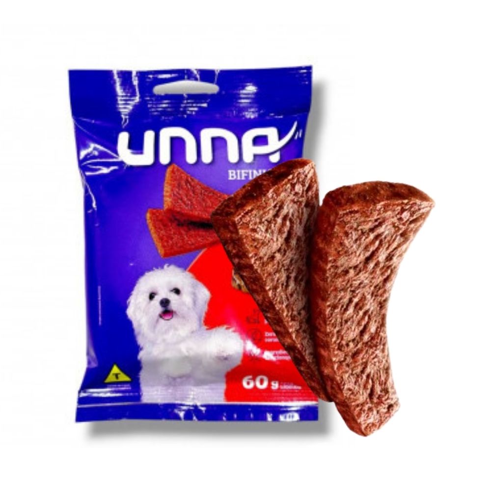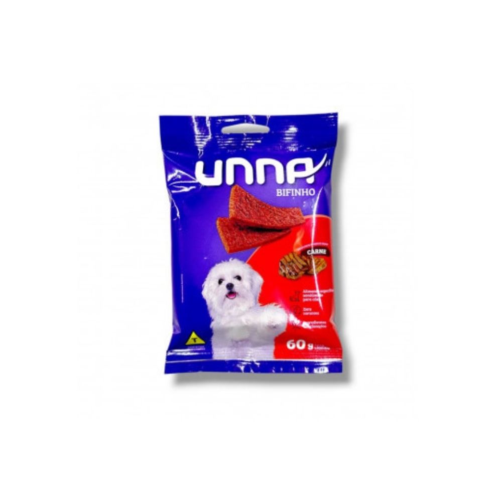 Garanta já o Bifinho Unna Sabor Carne 60g e ofereça ao seu cão um petisco delicioso, prático e ideal para o dia a dia!