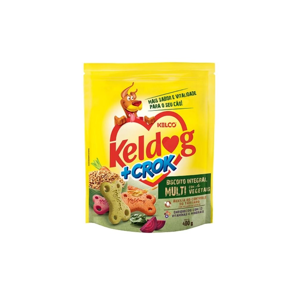 Garanta já o Biscoito Keldog +Crock Multi 400g e ofereça ao seu cão um snack variado, crocante e cheio de sabor todos os dias!