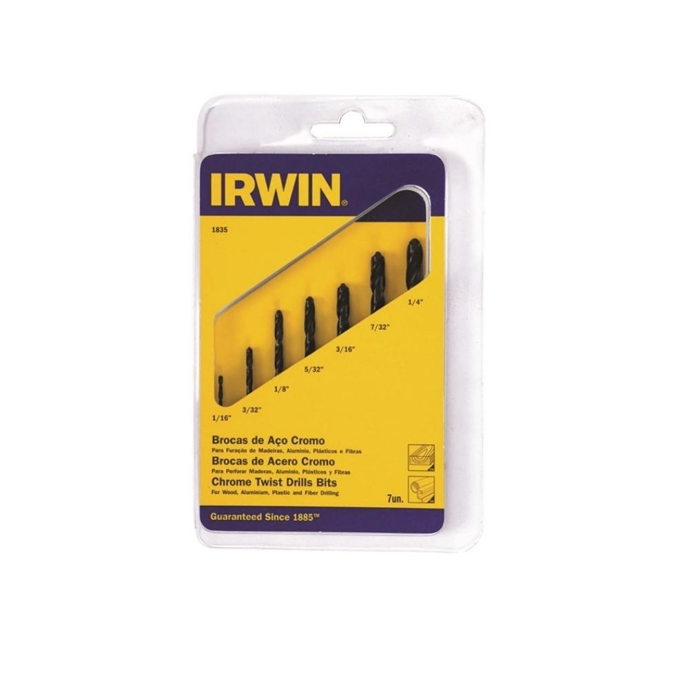 Broca Aço Rápido Irwin - 1/16 a 1/4" Kit com 7 Peças - 1865290