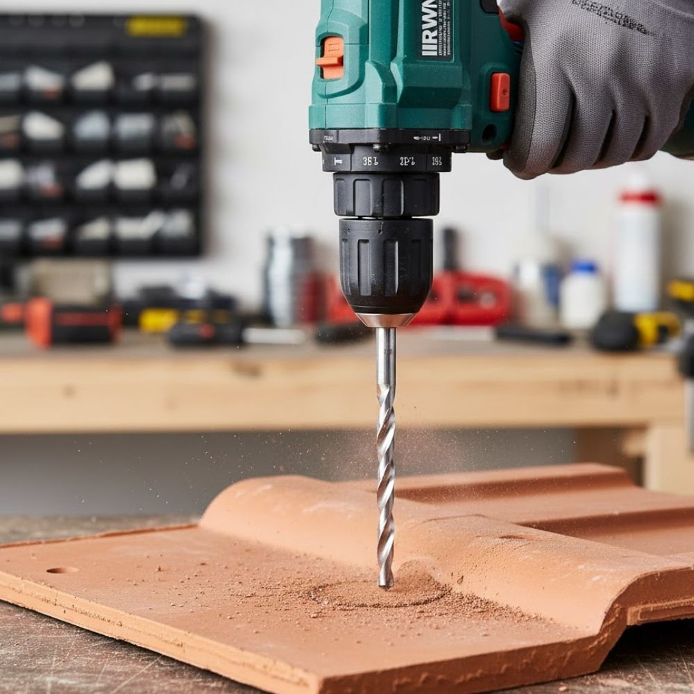 - Utilize a broca em velocidade baixa para evitar danos às telhas.