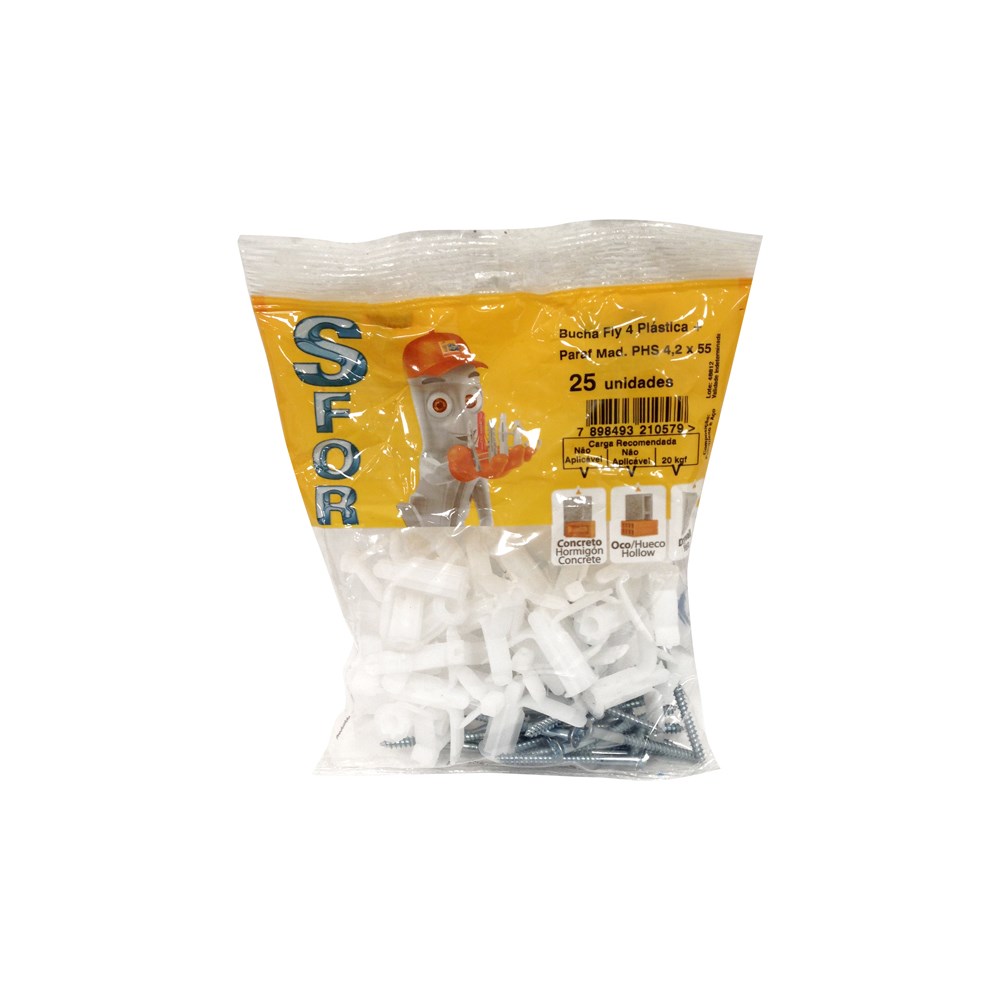 Bucha Fixação Sforplast Gesso Drywall 4" 24 a 32 + Parafuso 25 Peças 214