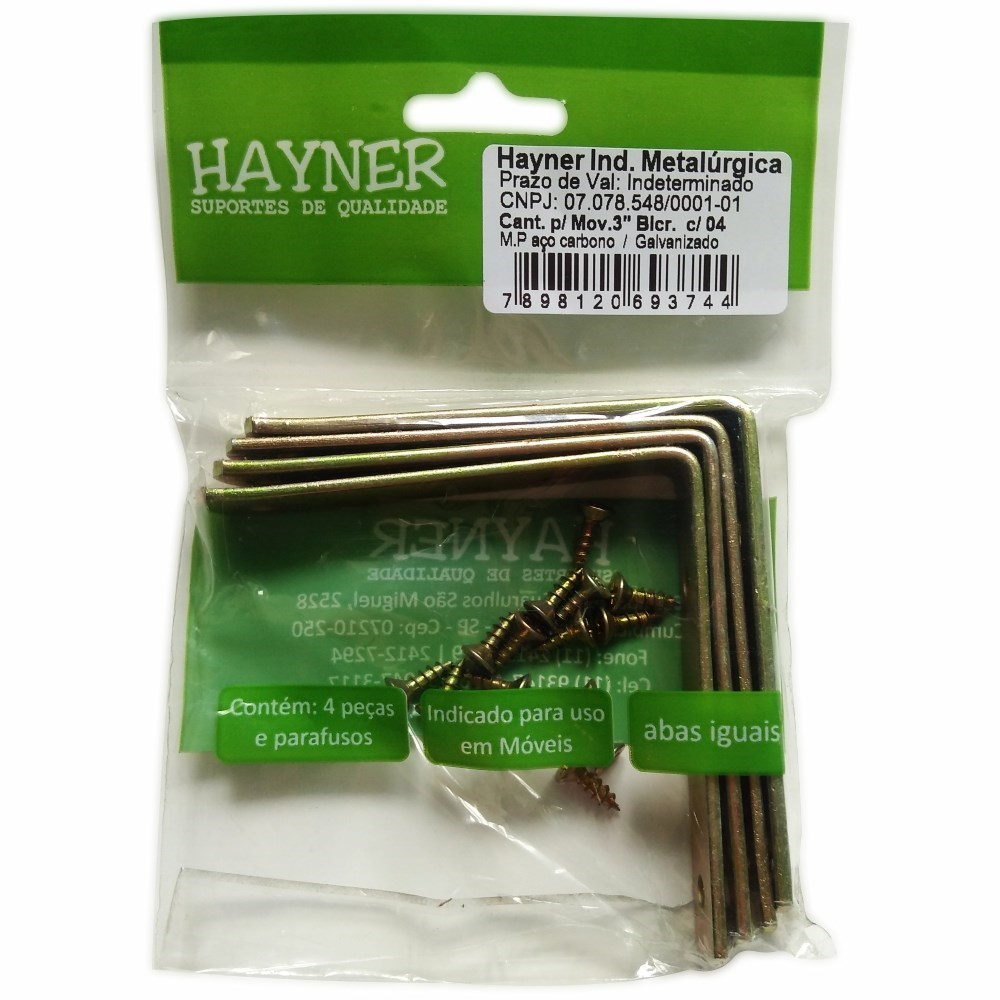 Cantoneira Móveis Hayner - Bicromatizada 3" 04 Peças - 93744