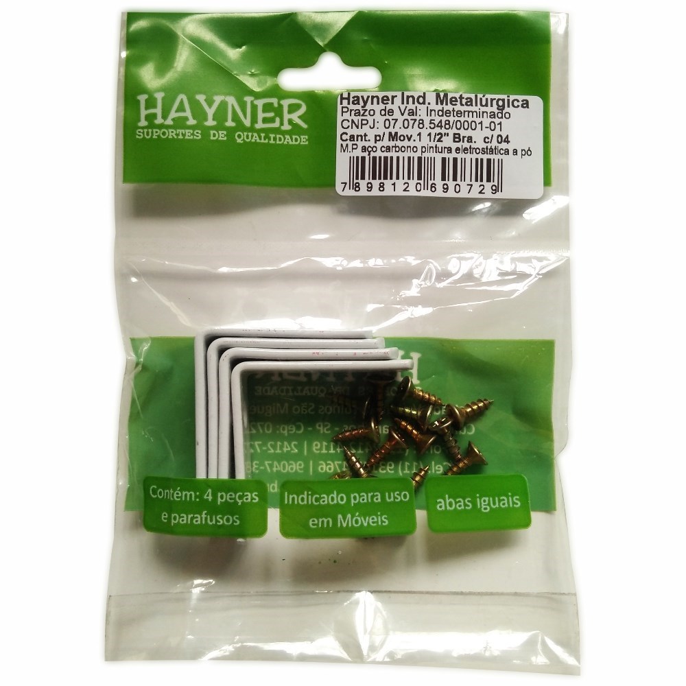 Cantoneira Móveis Hayner Branca 1.1/2" 4 Peças 93669