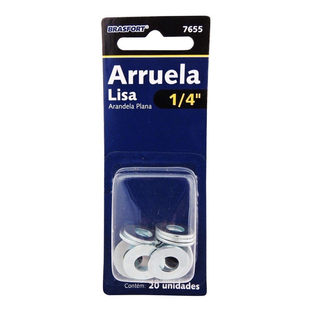 Cartela Arruela Lisa Zincada Brasfort (C)1/4" Cartela com 20 Peças 7655
