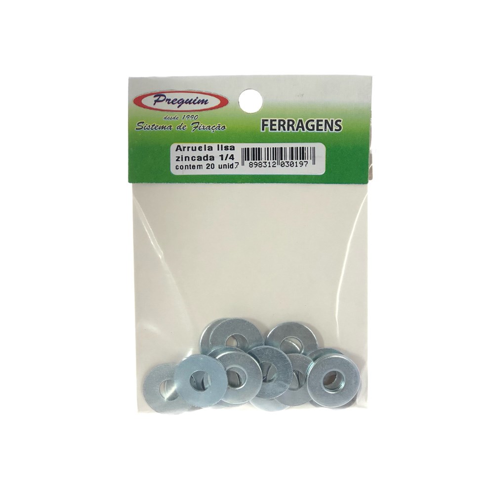 Cartela Arruela Lisa Zincado - (C)1/4" Preguim com 20 Peças - 0197