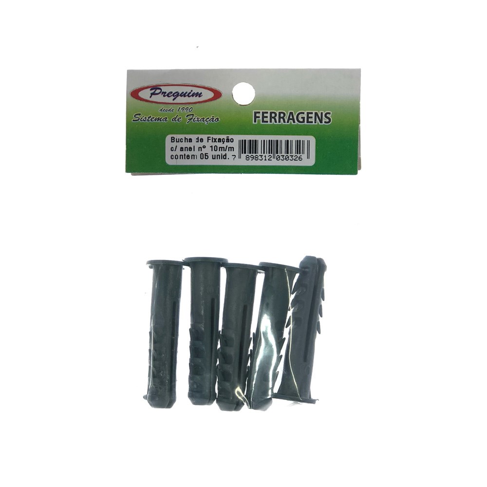 Cartela Bucha Fixação Preguim com Anel 10 com 05 Peças 0326
