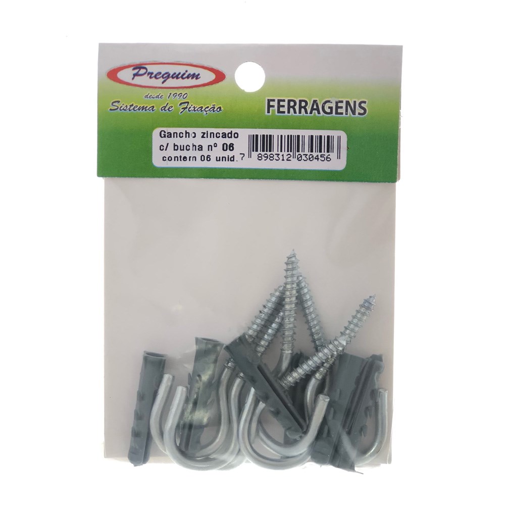 Cartela Gancho com Bucha Preguim - 06 com 06 Peças - 0456