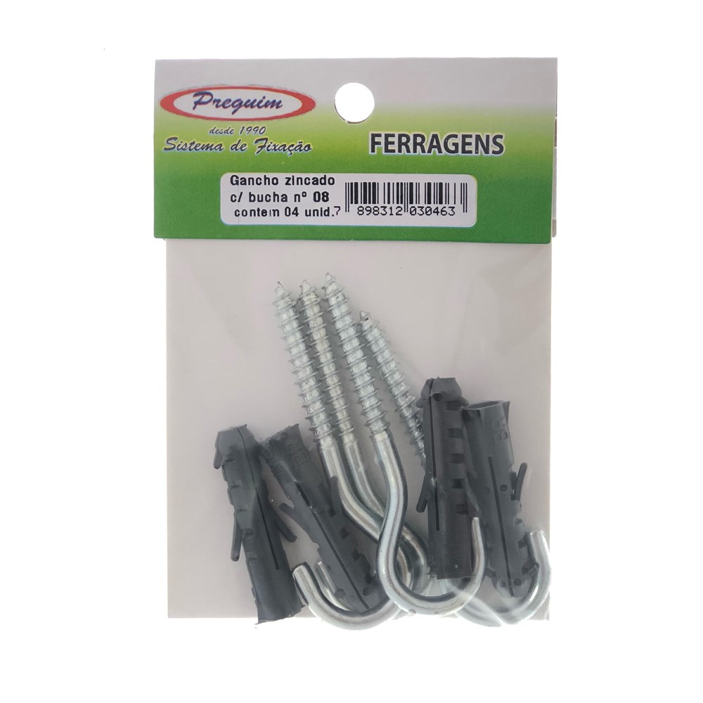Cartela Gancho com Bucha 08 Preguim com 04 Peças 0463