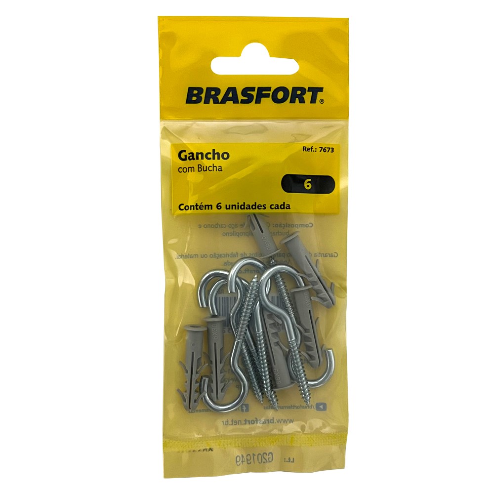 A Cartela Gancho Com Bucha Brasfort - 06 Com 6 Peças - 7673 é a escolha perfeita para quem busca qualidade, praticidade e eficiência na organização de espaços. Não perca a oportunidade de otimizar seu ambiente com este produto indispensável!