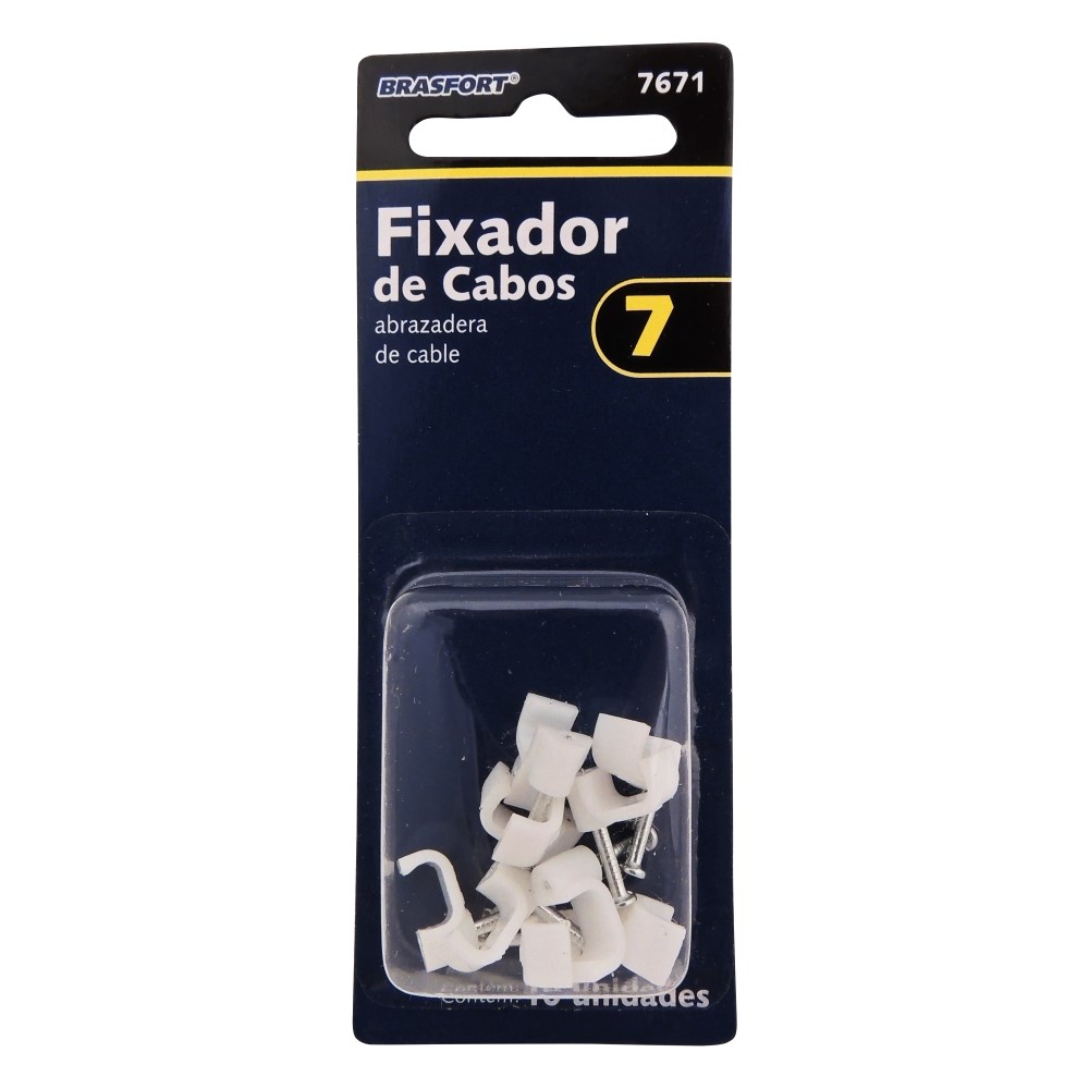 Cartela Grampo Fixa Fio Brasfort - Tipo Garra 07 Branco com 10 Peças - 7671
