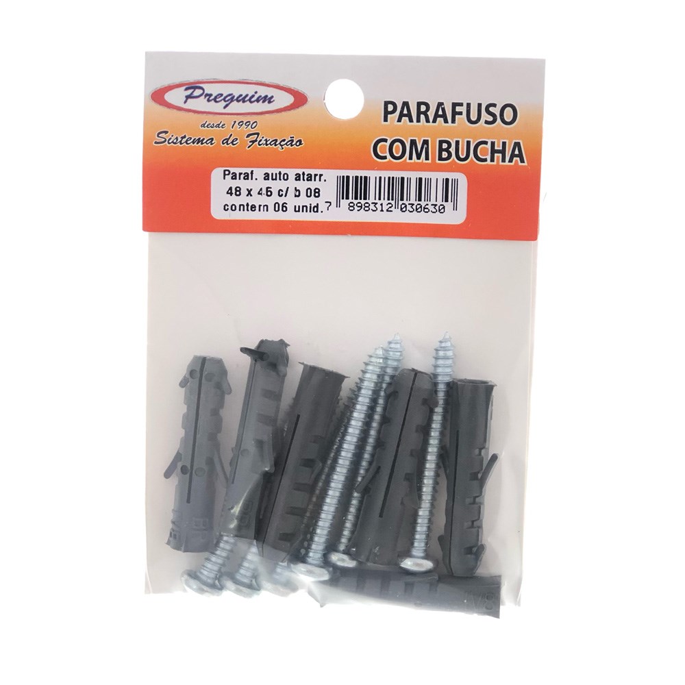 Cartela Parafuso Auto Atarrachante Preguim - Cabeça Panela Philips com Bucha 08mm com 06 Peças - 0630