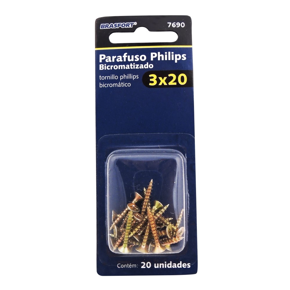 Cartela Parafuso Chipboard Brasfort Cabeça Chata Philips 3.0X20 Cartela com 20 Peças 7690