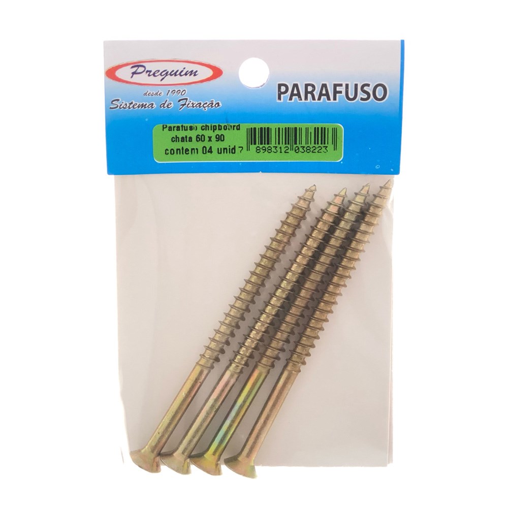 Cartela Parafuso Chipboard Preguim Cabeça Chata Philips - 6,0x90 com 04 Peças