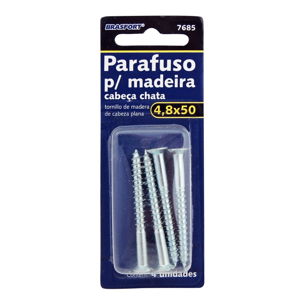 Cartela Parafuso Madeira Brasfort Cabeça Chata Fenda 4.8X50 Cartela com 4 Peças 7685