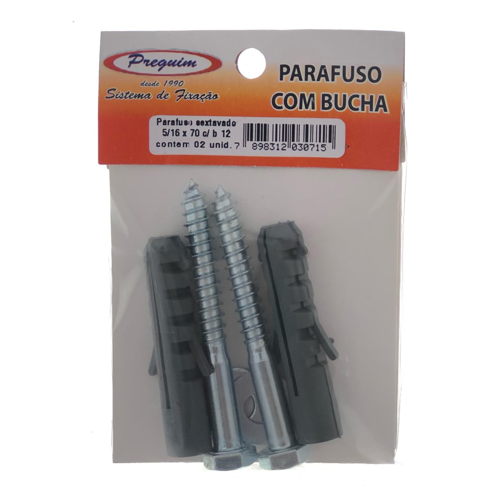 Cartela Parafuso Madeira Preguim - Com Bucha 12mm Sextavado com 02 Peças - 0715