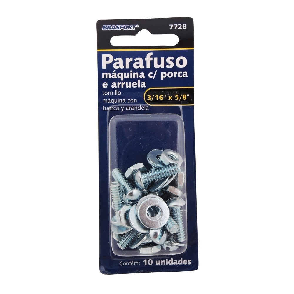 Cartela Parafuso Rosca Máquina Brasfort (D) Redonda 3/16 X 5/8+PORCA+ARRUELA Cartela com 10 Peças 7728
