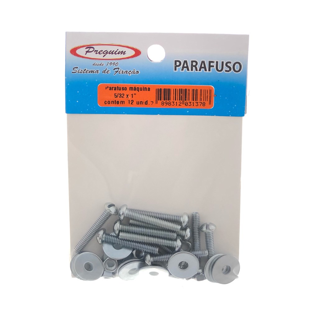 Cartela Parafuso Rosca Máquina Preguim (D) Redonda 5/32 X 1 com 12 Peças 1378