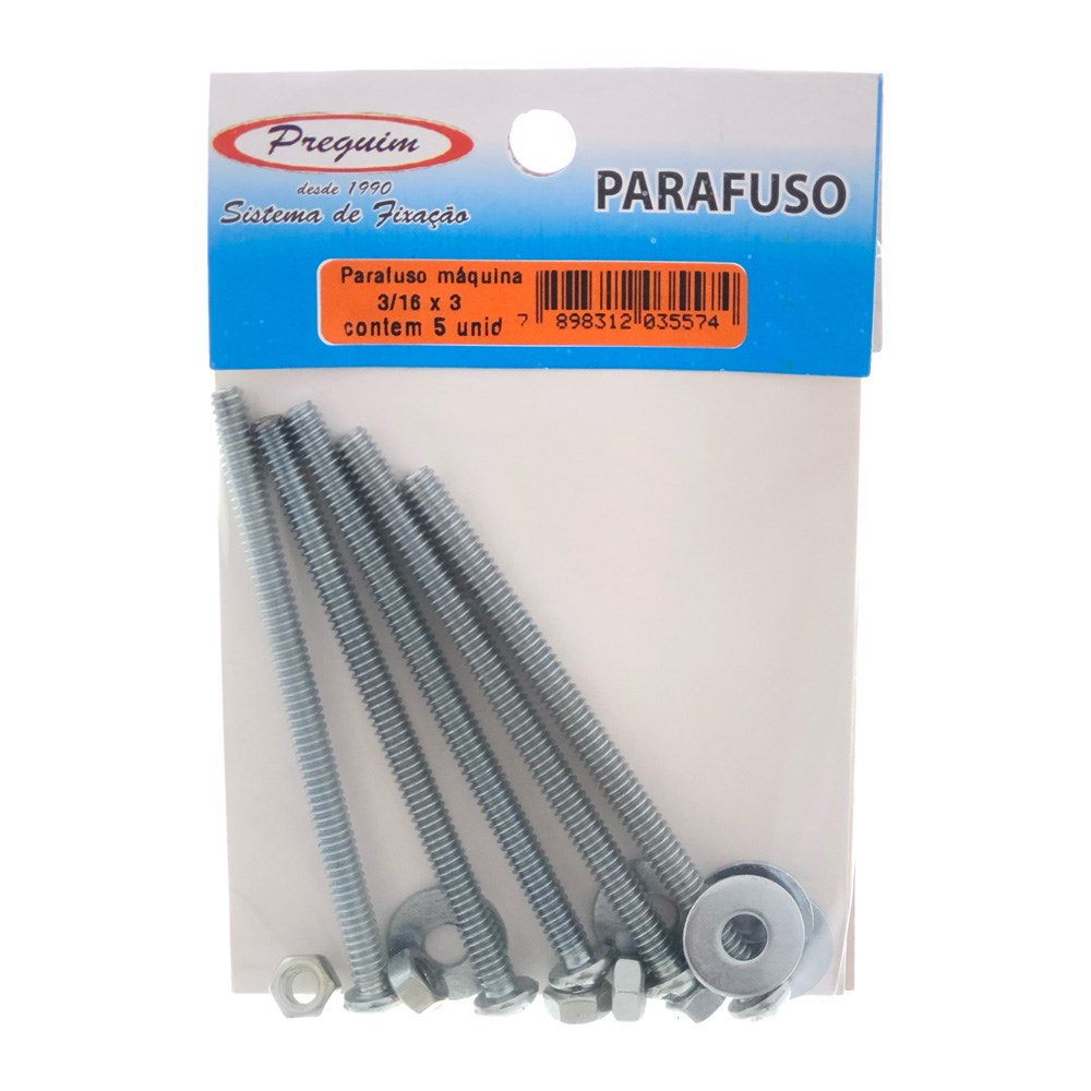 Cartela Parparafuso Rosca Máquina Preguim (L) Redonda 3/16 X 3-PORCA+ARRUELA com 05 Peças 5574