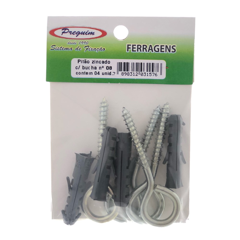 Cartela Pitão Preguim com Bucha 08 com 04 Peças 1576