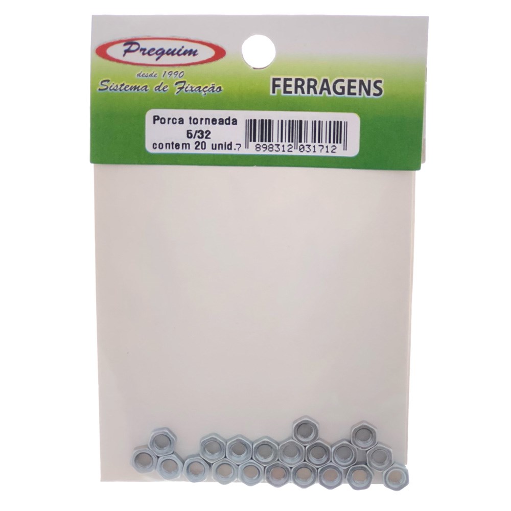 Cartela Porca Torneada Preguim Zincada (A)5/32" Nc com 20 Peças 1712