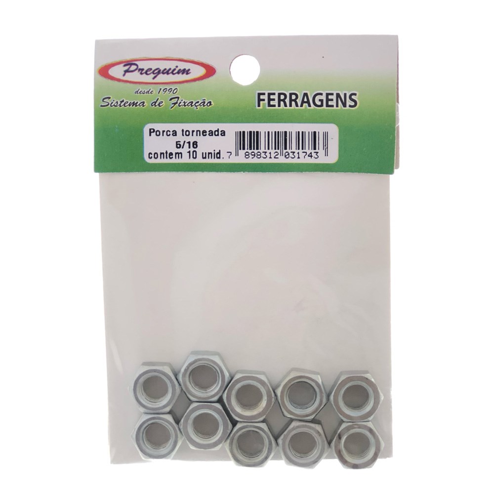 Com a Cartela porca torneada preguim zincada (D)5/16" NC com 10 peças - 1743, você terá em mãos um produto de alta qualidade e desempenho para suas necessidades de fixação. Garanta segurança e eficiência em seus projetos com essa cartela de porcas torneadas zincadas.