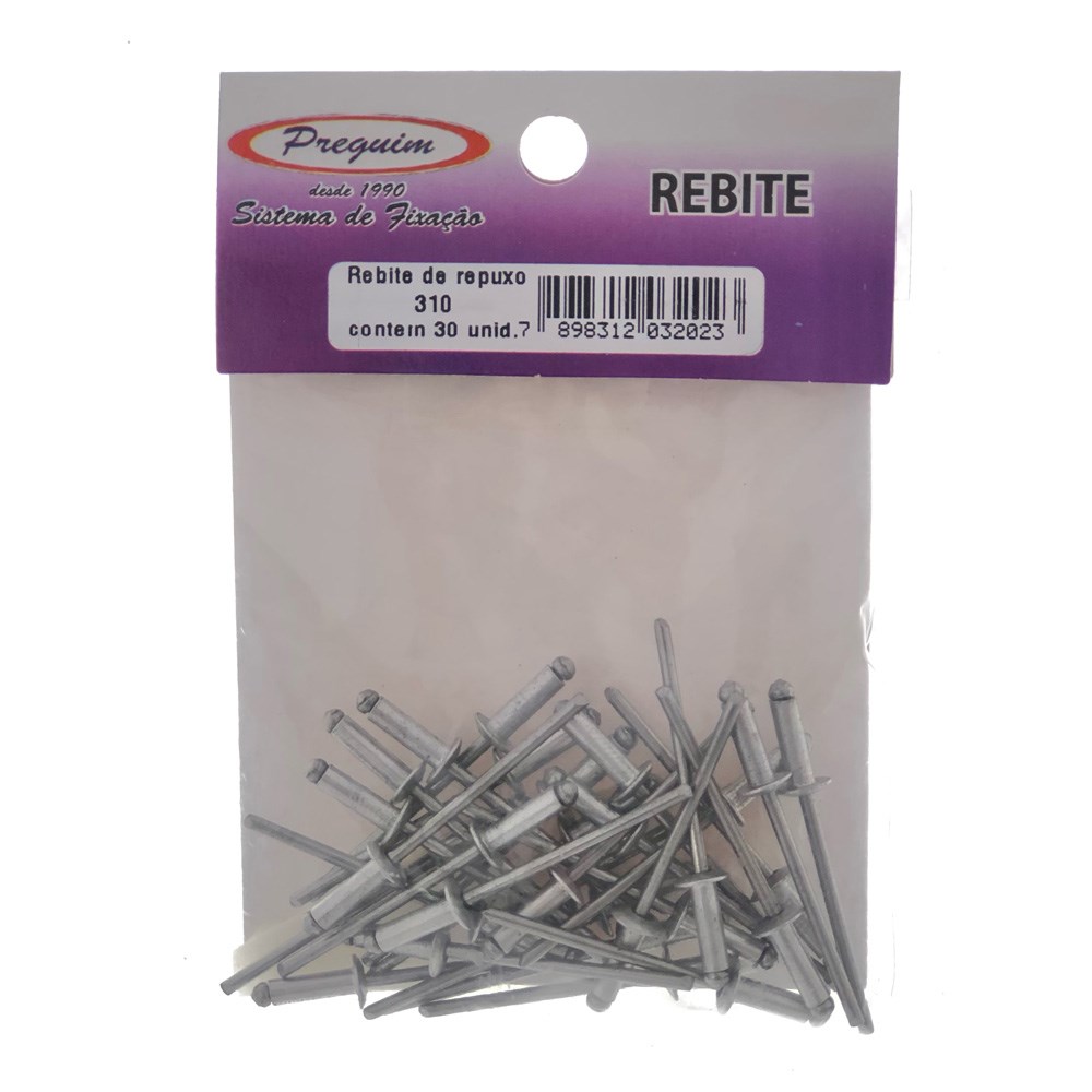 Cartela Rebite Preguim - Alumínio Repuxo 310 com 30 Peças - 2023