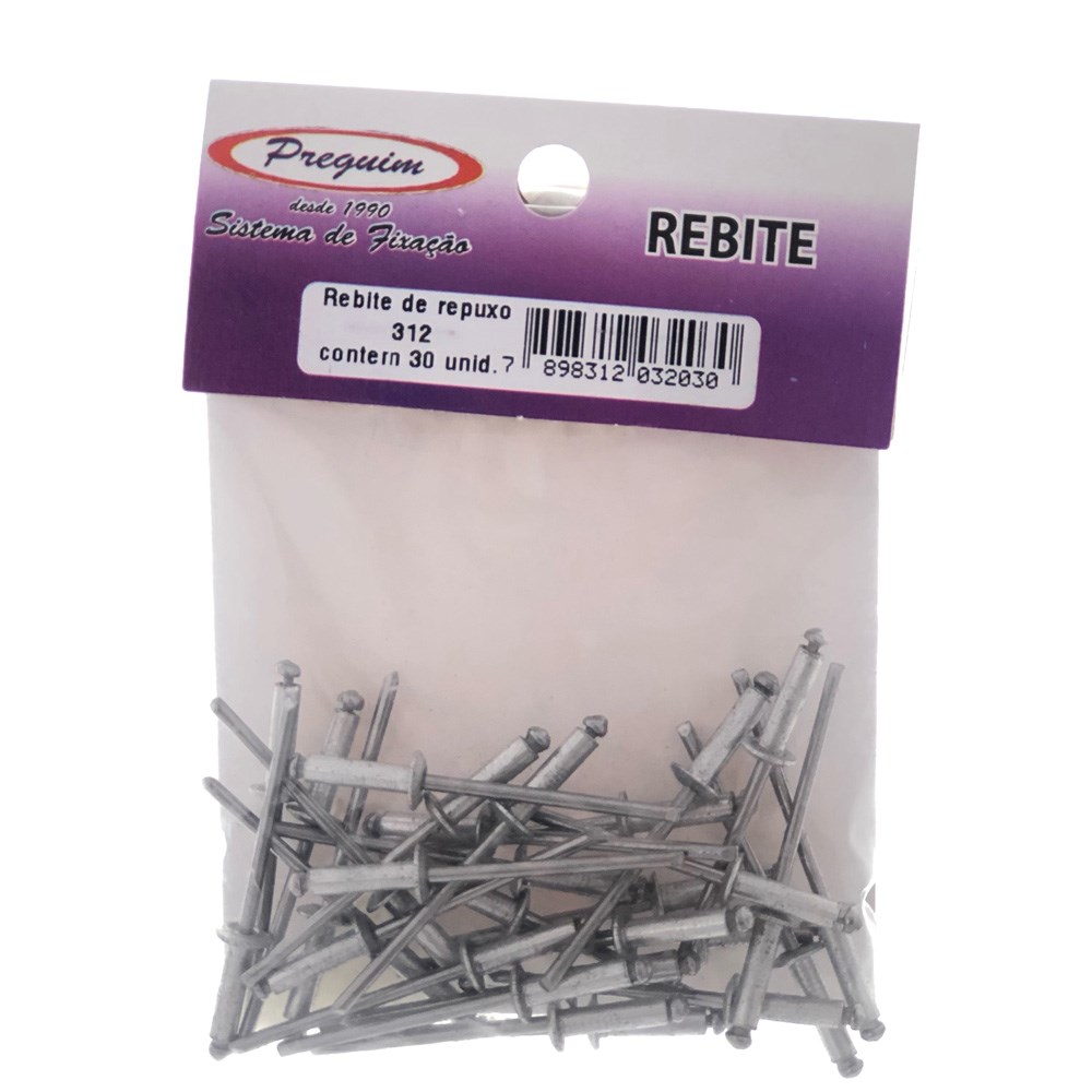 Cartela Rebite Preguim - Alumínio Repuxo 312 com 30 Peças - 2030